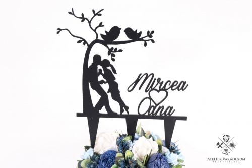 Descriere: Cake topper siluete mire & mireasa si nume personalizat
