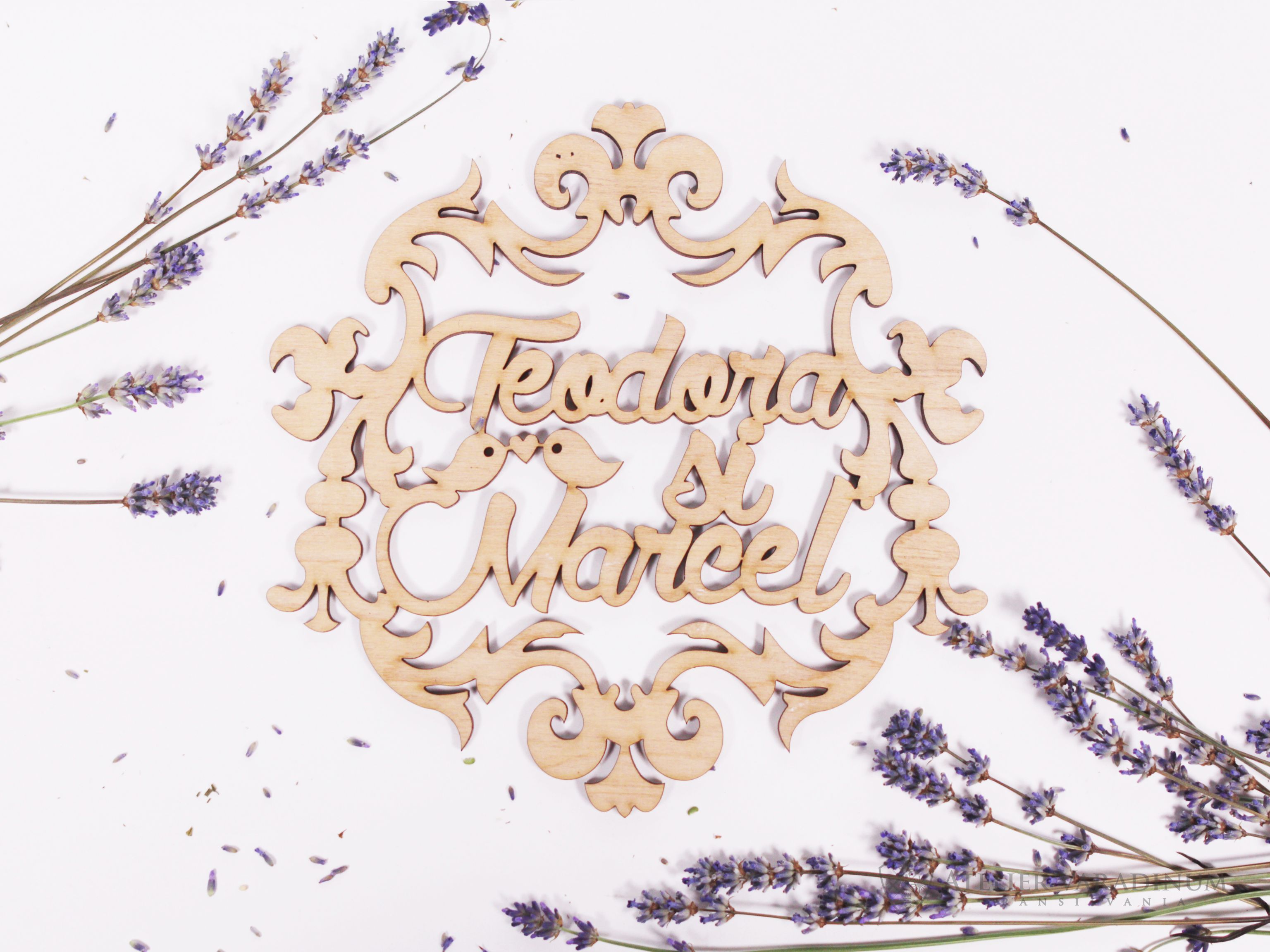 Oferim un decor unicat si expresiv pentru mese la nunta, inscriptionat cu nume personalizat, realizat prin debitare laser. De asemenea, acest decor poate fi folosit si la photo shooting sau poate fi utilizat ca un memoriu a unui eveniment deosebit.