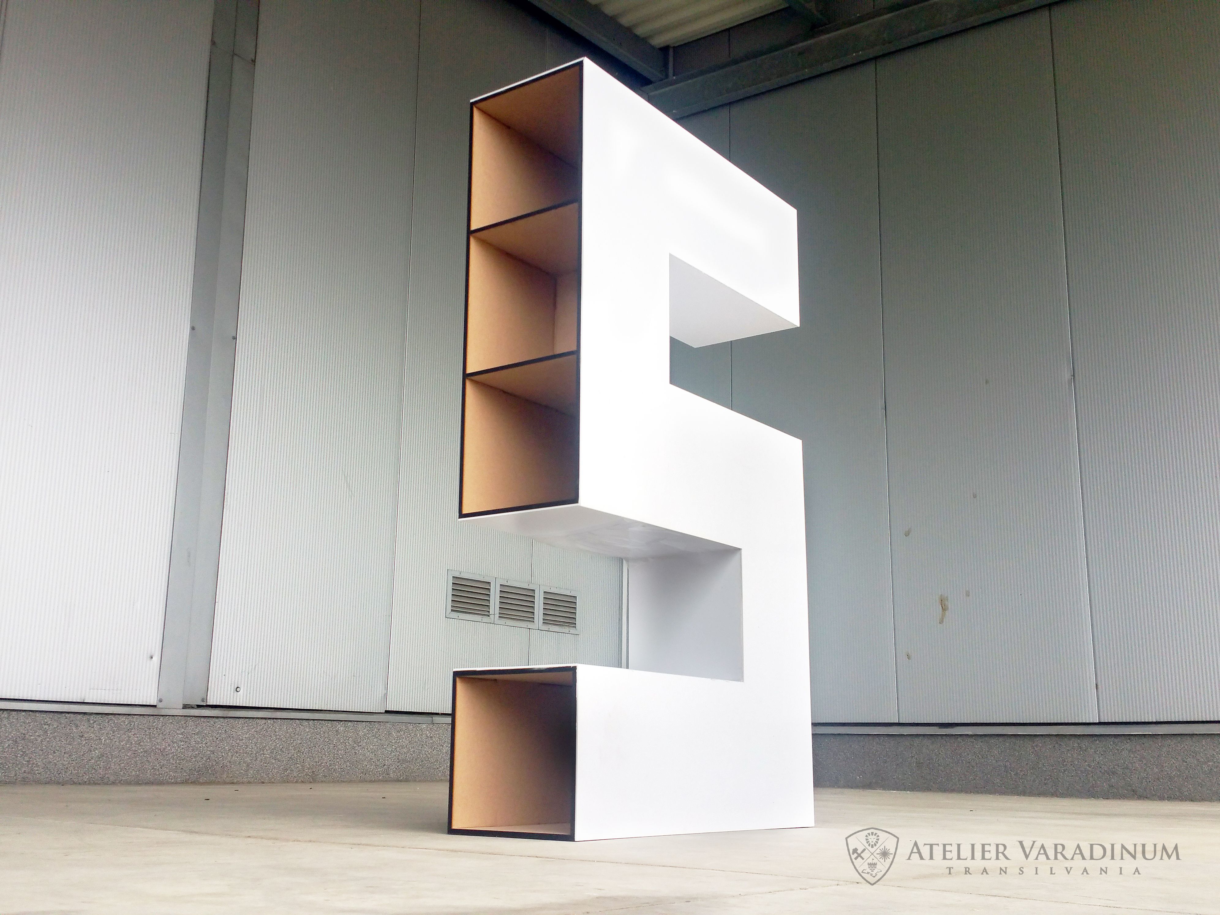 Etajere / rafturi in forma de cifre sau litere din mdf placate cu plexiglas alb.