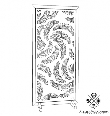 Panou decorativ din MDF realizat prin debitare laser. Panoul se poate comanda simplu doar placa debitata, netratata sau complet finisat cu rama, talpa de sustinere si vopsire sau baituire dupa caz.