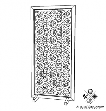 Panou decorativ din MDF realizat prin debitare laser. Panoul se poate comanda simplu doar placa debitata, netratata sau complet finisat cu rama, talpa de sustinere si vopsire sau baituire dupa caz.