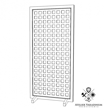 Panou decorativ din MDF realizat prin debitare laser. Panoul se poate comanda simplu doar placa debitata, netratata sau complet finisat cu rama, talpa de sustinere si vopsire sau baituire dupa caz.