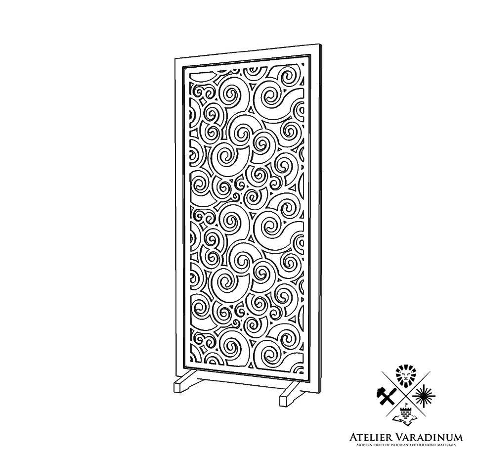 Panou decorativ din MDF realizat prin debitare laser. Panoul se poate comanda simplu doar placa debitata, netratata sau complet finisat cu rama, talpa de sustinere si vopsire sau baituire dupa caz.